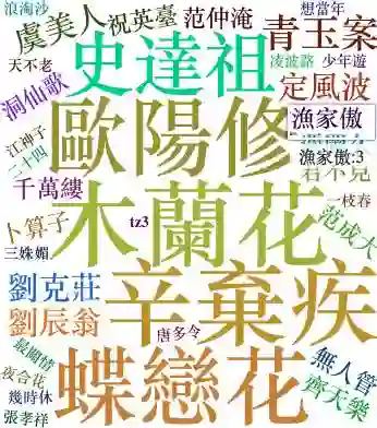 两个字的词语中,『何处』,『斜阳』,『相思』这些词使用频率最多,给我一种在看网络小说标题的感觉。