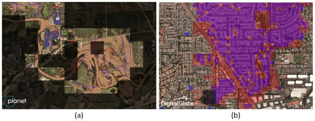在NeurIPS 2018 的“AI for Social Good”工作坊中,CrowdAI的Jigar Doshi和Facebook的Saikat Basu、Guan Pang使用基于CNN的语义分割模型,通过比较灾前、灾后的卫星图片的分割掩码,评估自然灾害对城市地区的影响。论文作者将通过这一方法评估受灾情况的指标命名为灾害影响指数(DII)。根据论文的试验(哈维飓风和圣他罗莎大火),DII的F1评分超过80%.