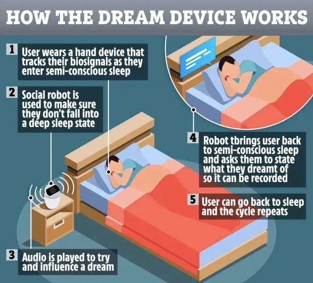 然后,用户会重新进入睡眠状态。直到他们的生物信号显示他们陷入了更深的状态。机器人会再次「吵醒」你,并且此循环重复进行,引导进入定制的梦境。