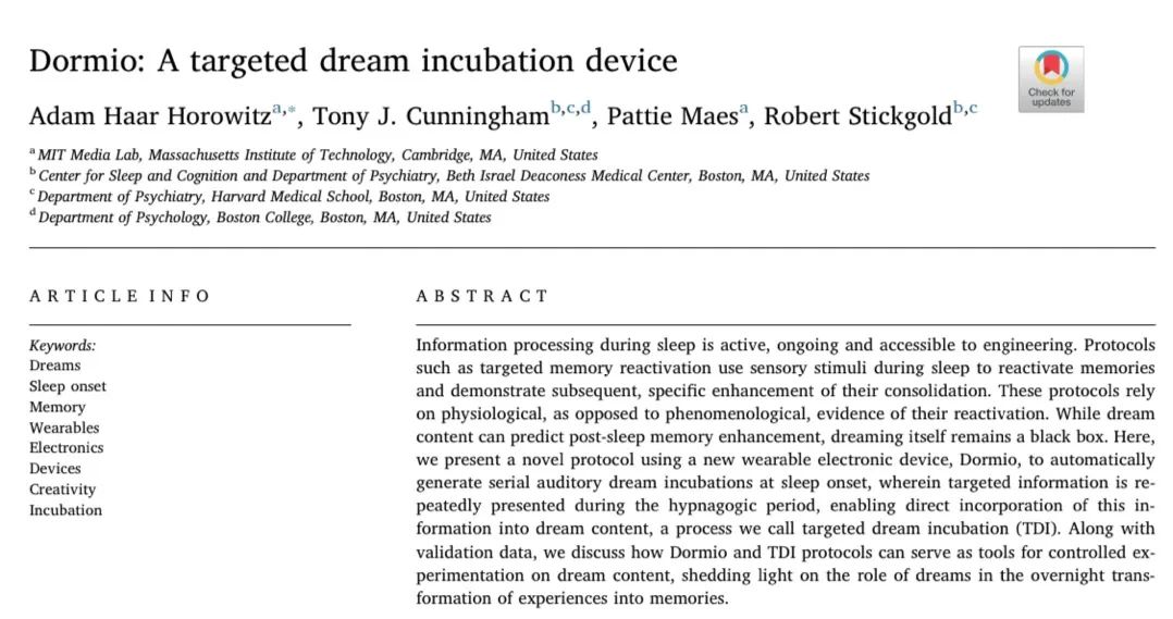这个装备是一个被称为Dormio的可穿戴手持设备。如今已是第三代。该研究最初于2018年发布在alt.CHI网站上,并在6个人身上作了初步的试验。随后,多名科学家对此表现出了浓厚的兴趣。并由此成立了一个专门研究梦境工程的研讨会。