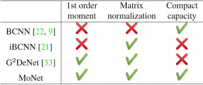 利用实证矩矩阵(moment matrix)结合 G^2DeNet 和双线性池化 CNN,并将高斯嵌入与双线性池化解耦合。