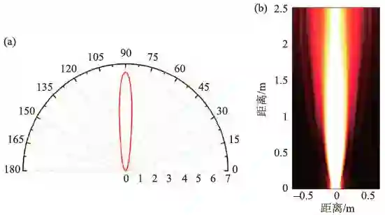 图2 准直声束(a)具有负的阻抗边界情况下的点源辐射的理论计算指向性图;(b)具有负的阻抗边界情况下的点源辐射出的声波的数值模拟声强分布图