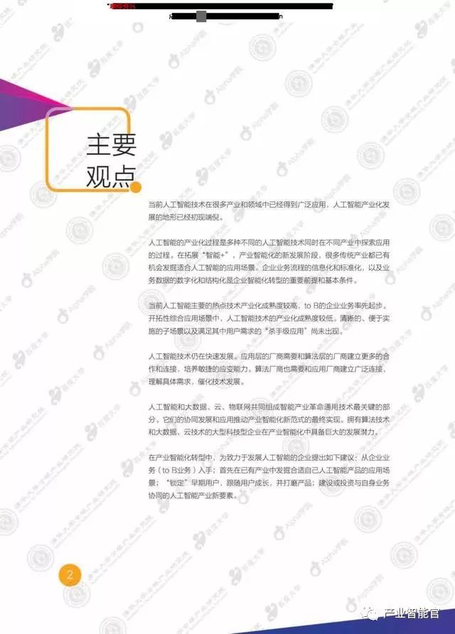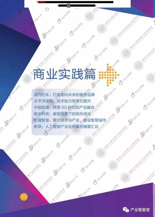 本研究聚焦于人工智能产业化发展历桯和现状,整合了清华大学全球产业研究院的学术观察和百度大学Apha学院的业界实践,从产业演进的视角具体探讨不同人工智能技术的产业化发展历程,深入分析产业化发展状况,发现人工智能产业化的动态结构和竞争焦点,希望能够为从业者、投资者和硏究者提供有意义的启发。