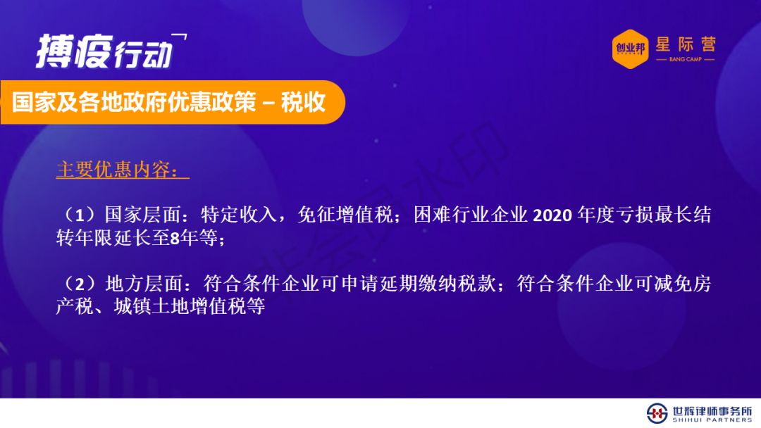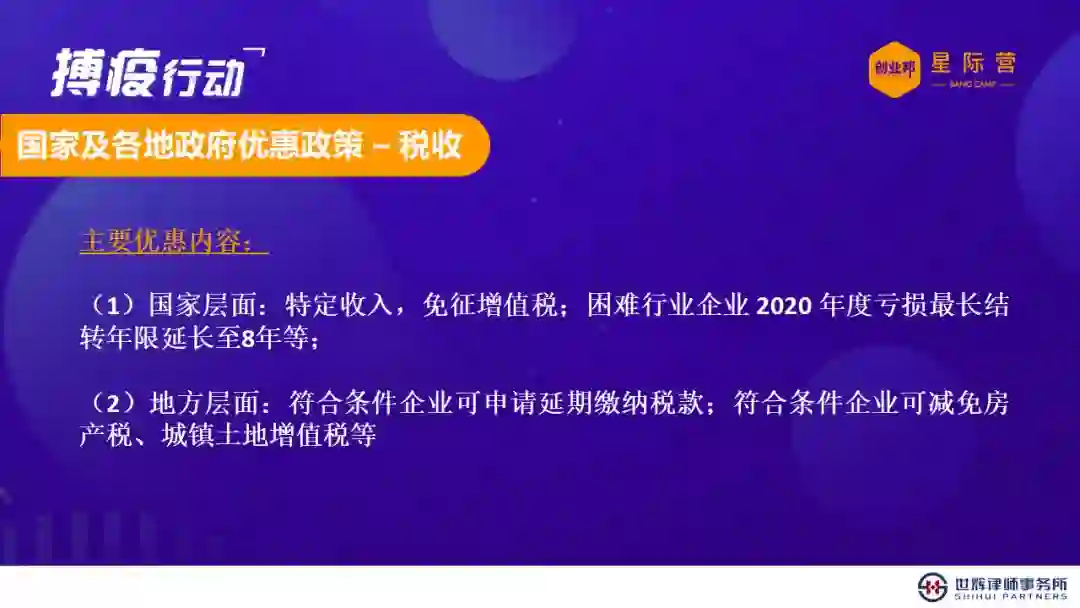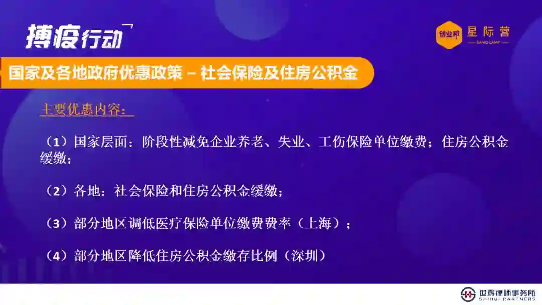一月初疫情全国爆发以来,其实我们所就有一个团队专门的在跟进,各地政府,尤其是1月底2月初,其实各地政府国家层级,包括各省市,甚至有的很多地级市的区出台了非常多的优惠政策。多层级的政府机构其实都有出台这些政策,刚刚有提到国家层的,比如说像国税总局、人社部,包括像财政部等等,都出台了很多的文件,出台了一系列的优惠政策。