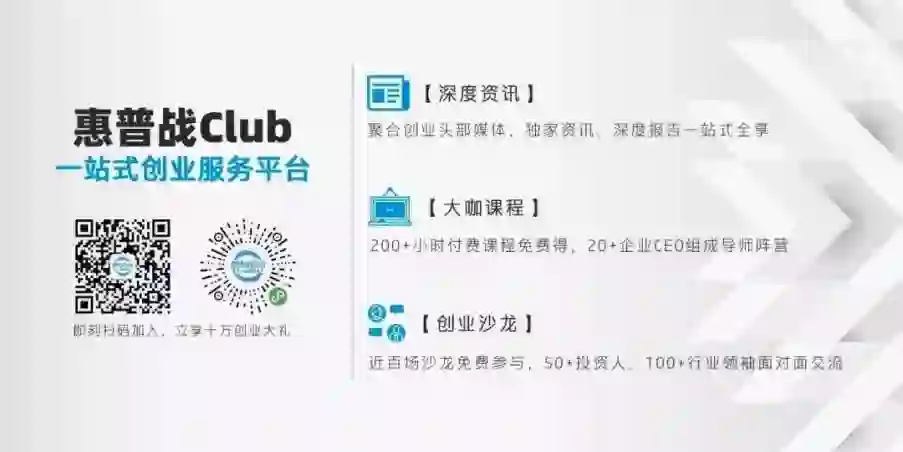 惠普战Club是为创业者打造的一站式创业服务平台,除了联合创业邦打造应对疫情的直播课程外,还有关于商业模式、团队、股权、融资等200+小时大咖课程,为创业者加油。