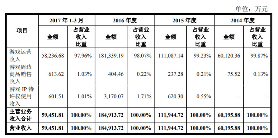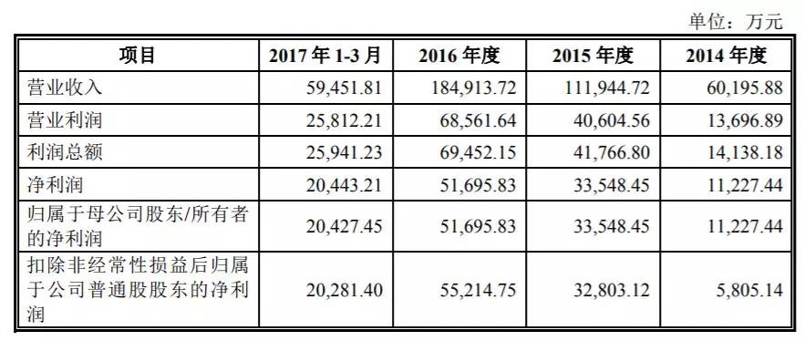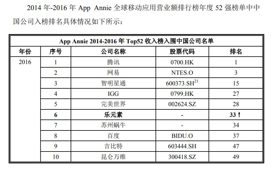 乐元素的营收和利润数据非常好看。根据招股书,公司2014年、2015年、2016年营业收入分别为6亿元、11亿元、18亿元,光是2017年第一季度更是达到6亿;2015年和2016年收入增长 83%、64%。利润方面则依次是5800万、3.3亿、5.5亿和一季度的2亿,增长同样保持在60%以上。