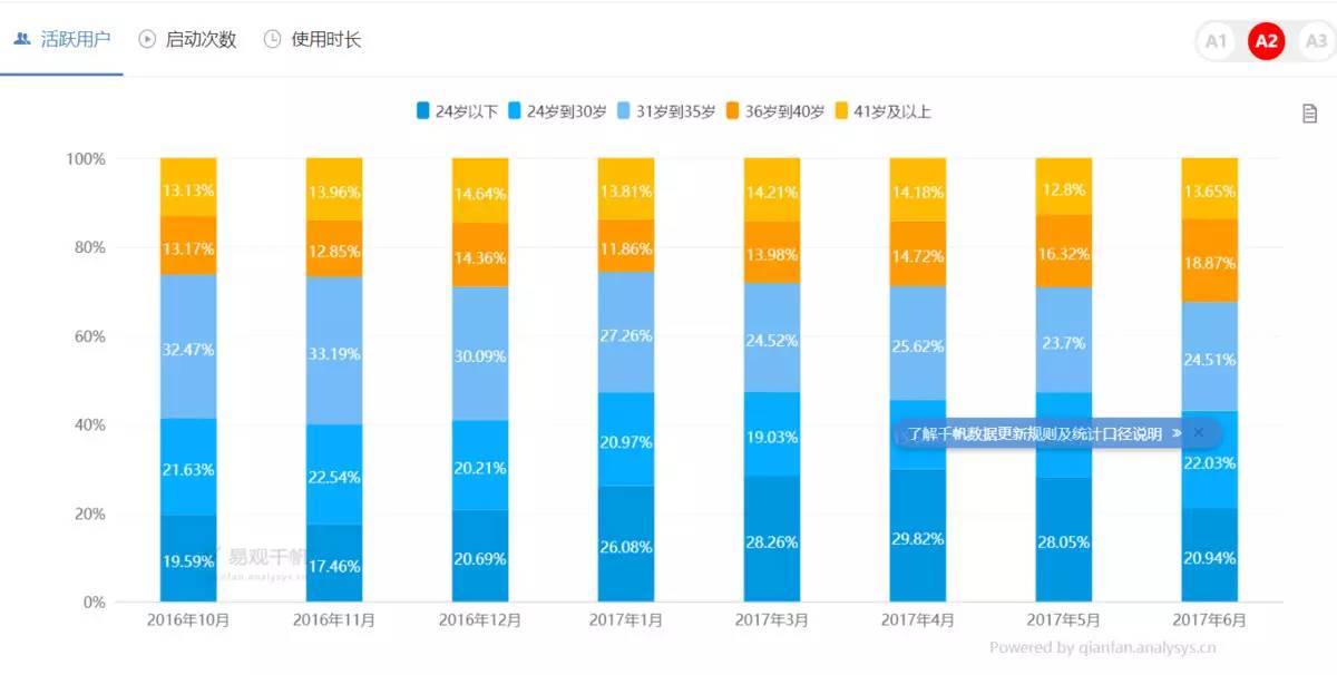 同时,传统的重度游戏玩家通常局限在年轻人群,这类特征在《阴阳师》和农药上依然比较明显,但通过易观千帆查阅《开心消消乐》的用户画像,会发现非常多元,男女比例平均,老少咸宜。