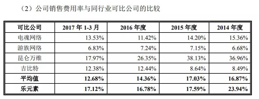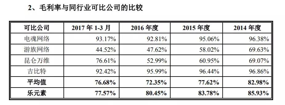 乐元素的毛利率表面看上去略高于同行业公司。招股书解释,这与公司的模式有关和会计科目计算方式有关。