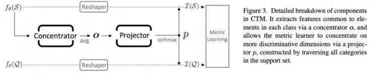 给定一个特征提取器,该模型大体上可以预测一个特征向量上的注意力映射。「Concentrator」会分别查看每个类(或图像),而「Projector」则会融合来自任务中所有类的信息来生成注意力映射。「Concentrator」和「Projector」都是通过一个小型的卷积神经网络(CNN)来实现的。我非常喜欢这种简单的模块,当在几个一致的基于度量的方法上使用该模块时,它们总是可以提升性能。