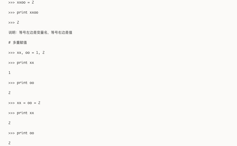 上面打印时就是在引用变量了,可见Python引用变量不用加$什么特殊字符,不像Shell、PHP那样,还要加$。