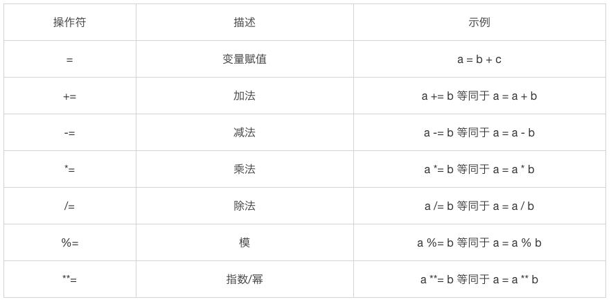 赋值操作符,操作符左边运算右边,然后将结果赋值给操作符左边。