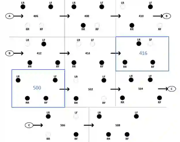 US9789607B1侧重于不同步态列表的查询、US10017218B1侧重于相同步态的腿的行走顺序并避免失步,如下图所示为制定的步态列表。