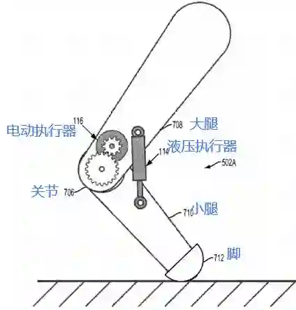 为了提高机器人运行的效率、减小功率消耗以及提高运动的稳健性,波士顿动力在2014年8月1日提交的专利US20160023647A1中通过判断关节承受的载荷类型和大小,以选择适当的液压或电动致动器,使得机器人的功率消耗最低。如下图所示,机器人根据不同的负载选择不同的驱动方式组合。