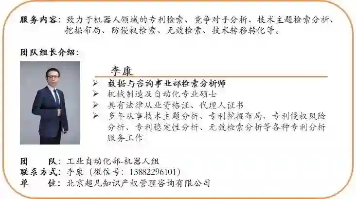 可以看出:从2001~2011年,波士顿动力共申请了4件有关足式机器人的专利,这十年是足式机器人技术的探索阶段,即专利布局的早期阶段;从2014年开始,波士顿动力在足式机器人的不同技术维度开始进行专利布局;直至2017年都保持了较高的申请量,这期间不断推出了足式机器人的改进版,于2016-2017年推出的SpotMini是更新换代的产品(爬楼梯的SpotMini),为其商业化应用奠定了基础。