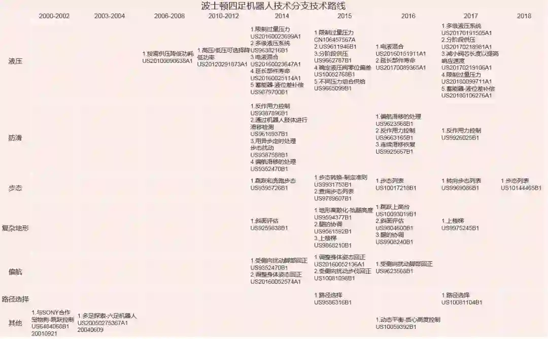 经过了前期在多足机器人领域的探索,波士顿动力在多足机器人的发展上持续改进,并将其成果进行专利布局。