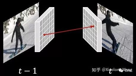 我们在deep feature上计算semi-dense correspondence。如下图,对于相邻两帧,我们首先抽取deep feature (大概30x30 resolution)。对于在t-1帧的一个格子,我们通过算nearest neighbor找到在t帧最相似的格子。下图箭头两端代表了其中一个correspondence。