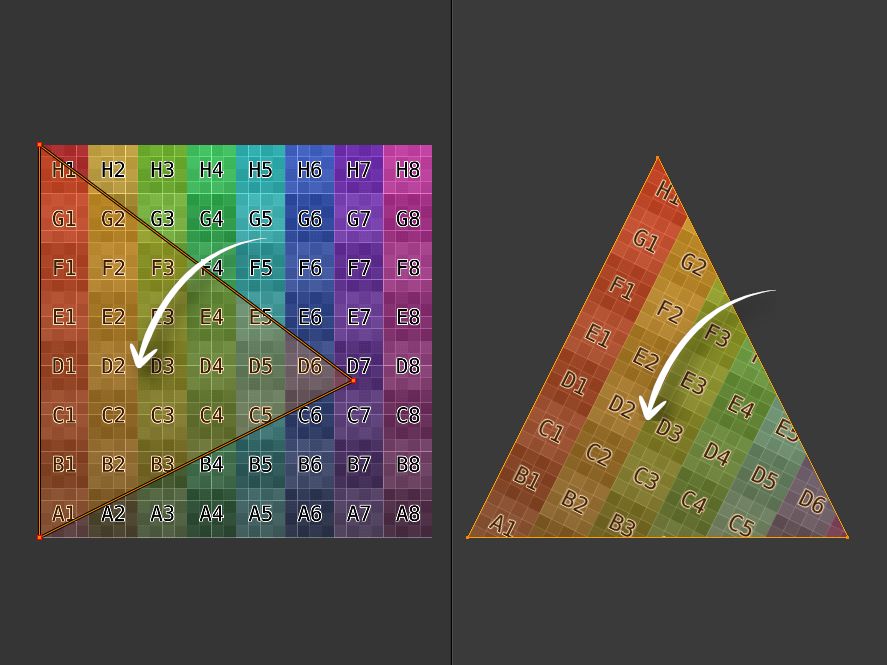 纹理涉及使用UV坐标将一些颜色或一些其他类型的矢量映射到片段。 U和V的范围从0到1。每个顶点都获得一个UV坐标,并在顶点着色器中输出。