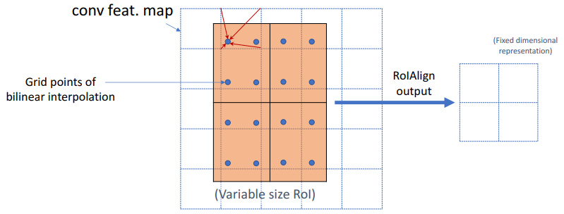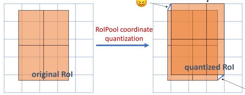 两次取整的过程,虽然对目标检测影响不大,不利于预测像素级别的 mask。