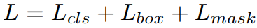 第二阶段,训练 Mask R-CNN,损失函数为: