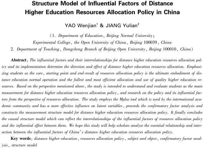 关键词:远程高等教育;资源配置政策;主客体;验证性因素分析;结构模型