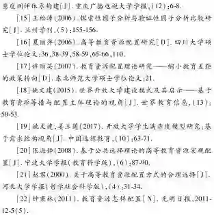 远程高等教育作为高等教育的特殊形式,除具有师生时空“准永久性分离”的特征外(Keegan,1997),本质上是高等教育资源特别是优质高等教育资源在社会范围内的二次分配和补充,是中国高等教育由“精英化”向“大众化”转变的助推剂和加速器,具有服务全民终身学习的特征。对其资源配置影响的研究首先需要界定资源配置的主体、客体及目的,即需要回答谁来配置教育资源、配置给谁(配置对象)和为什么配置教育资源,还要明确资源配置的主体与客体包括哪些要素。综上,本研究认为远程高等教育资源配置指遵循一定原则、以一定方式将有限的高等教育资源特别是优质资源合理分配到各个组成部分(包括不同区域、群体、学校、教育类型之间)中,保证远程高等教育正常运行以及实现教育资源最充分、最有效的配置和使用,即在远程高等教育活动中用最少的资源耗费,产生最好的教育效果。