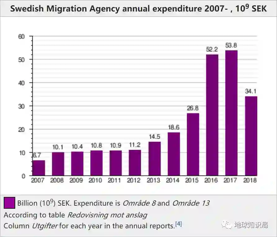 在2011~2017年,瑞典接收了超过40万难民,而瑞典一个国家的总人口只有1000万左右,相当于北京的一半。从难民数量与本国人口数量的比值来看,瑞典承担的难民份额是全欧最大的。