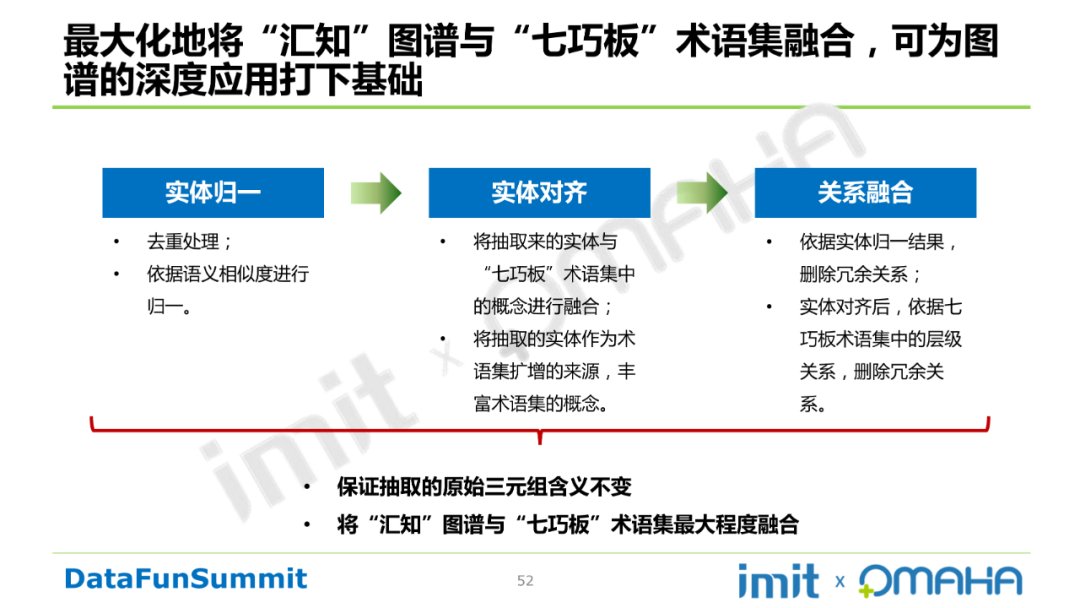 Step3:知识融合。最大化地将“汇知”图谱与“七巧板”术语集融合,可为图谱的深度应用打下基础。其过程大致包括实体归一、实体对齐、关系融合等阶段。具体操作如下所示: