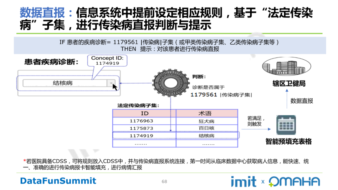 也可在信息系统中提前设定相应规则,基于“法定传染病”子集,进行传染病直报判断与提示。如下图所示: