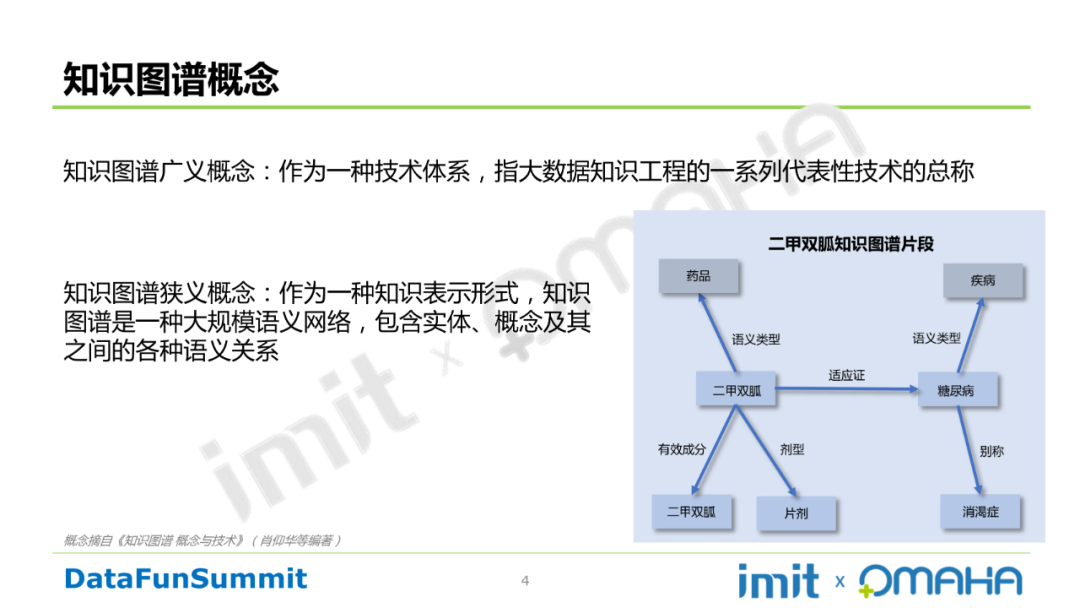 知识图谱狭义概念:作为一种知识表示形式,知识图谱是一种大规模语义网络,包含实体、概念及其之间的各种语义关系。如下图中的二甲双胍知识图谱片段。