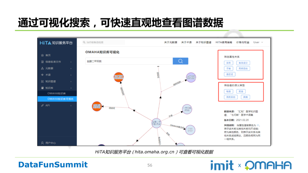 医药卫生知识服务系统:由中国医学科学院医学信息研究所承建,通过对资源的深度挖掘和关联分析,建设了知识图谱、知识脉络分析等特色知识服务和应用。其规模:已发布疾病和药品领域知识图谱,其中疾病涵盖心脑血管疾病、呼吸系统疾病、免疫系统疾病、消化系统疾病、肿瘤等。