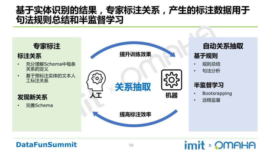 关系抽取基于实体识别的结果,专家标注关系,产生的标注数据用于句法规则总结和半监督学习。具体流程如下所示: