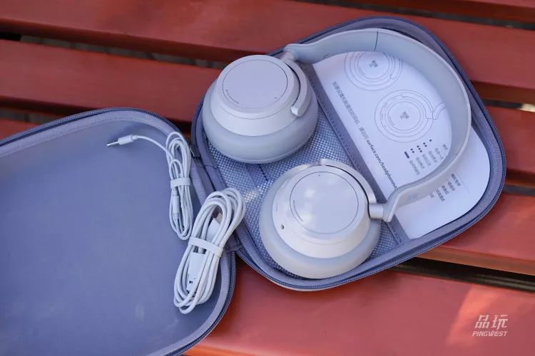也或许是我的头围比较小,耳弓拉开一点就能罩住我的耳朵,压迫感没有那么强烈。当然头围较大的用户同样也能将耳弓拉到头,再体验一下夹耳的程度。