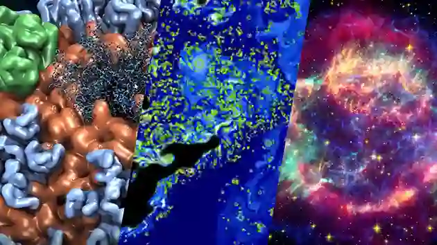 研究人员正在使用科学可视化从大型 HPC 数据集收集数据,从而将蛋白质折叠进行可视化、分析化学性质、了解超新星等。例如这篇论文中的研究就是通过NVIDIA Omniverse™ Platform构建的细胞模型,并可视化。
