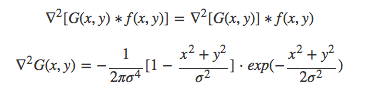 上面的公式中决定了对图像的平滑程度。高斯函数生成的滤波模板尺寸一般设定为(加1是会了使滤波器的尺寸为奇数)。使用高斯函数对图像进行滤波并对图像滤波结果进行二阶微分运算的过程,可以转换为先对高斯函数进行二阶微分,再利用高斯函数的二阶微分结果对图像进行卷积运算: