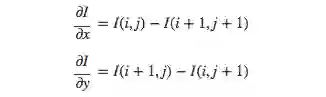 1963年,Roberts提出了这种寻找边缘的算子。Roberts边缘算子是一个2x2的模板,采用的是对角方向相邻的两个像素之差。从图像处理的实际效果来看,边缘定位较准,对噪声敏感。在Roberts检测算子中: