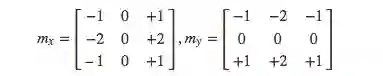 可以导出Roberts在点处的水平与竖直边缘检测卷积核为: