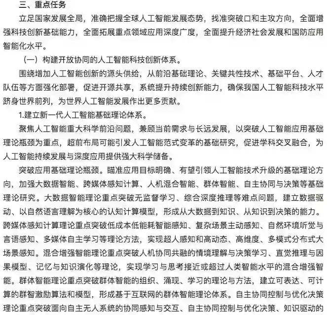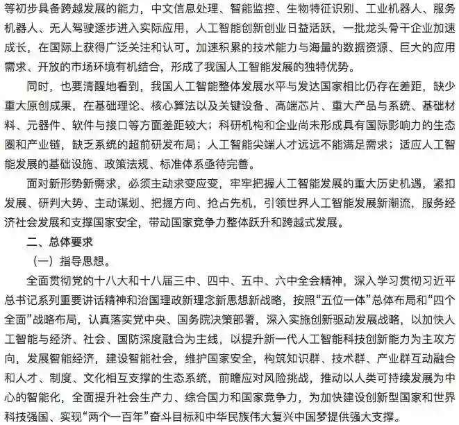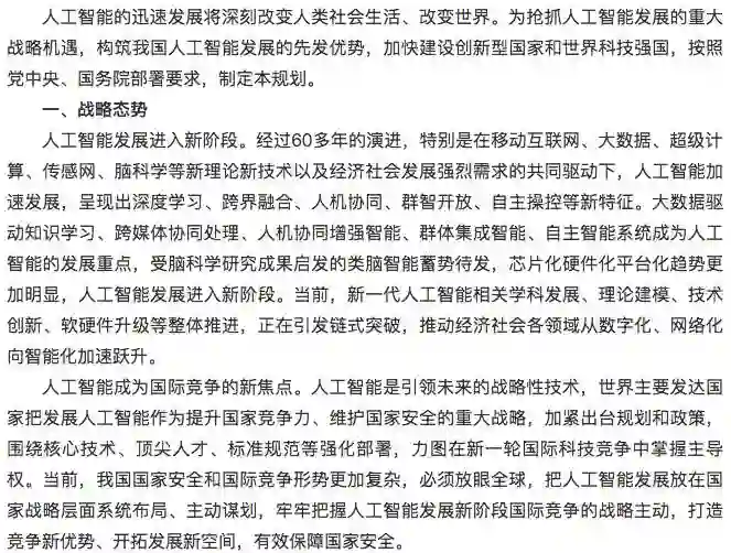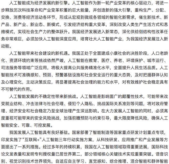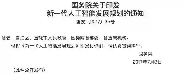 2017年7月20日国务院关于印发新一代人工智能发展规划的通知,下面是详细内容。