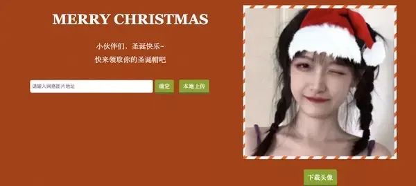 还真给我想到了,这就是今天的主题,用纯前端的方式给你做一个自动佩戴圣诞帽的网站。