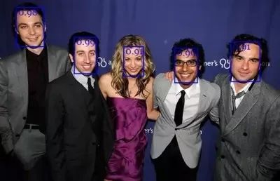 然后 face-api.js 会通过该算法让机器不断的学习并优化,从而训练出模型,通过该模型可以识别出所有的人脸边界框