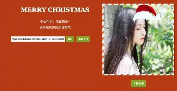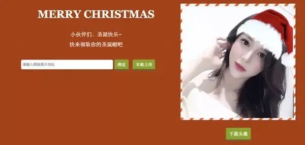 有了这个网站,你就能顺利在票圈装 13 了,不仅如此,你还可能因此邂逅一段完美的爱情!试想一下,当你发了这个网站在票圈后,女神看到了就会为你的技术所折服,然后主动把照片给你,让你帮她给头像戴上圣诞帽,然后你就顺利的得到了和女神搭讪的机会,然后赢取白富美,走向人生巅峰,想想还有点小激动呢。