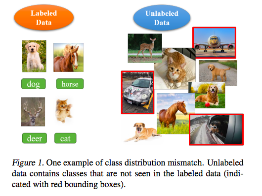 这种假设在实际应用中很难实现,同时通常的应用中,无标签数据集中会有一些有标签数据集中不包含的类别。例如,根据关键词从网络抓取的无标签网页,通常包含很多之前没有涉及的类别。