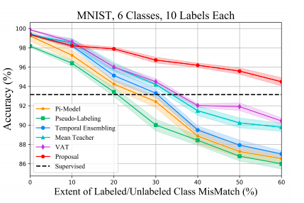在40%的未见类无标签数据中,现有的深度半监督方法不如监督学习。但是,新方法能在60%以上的未见类无标签数据中实现性能提升。