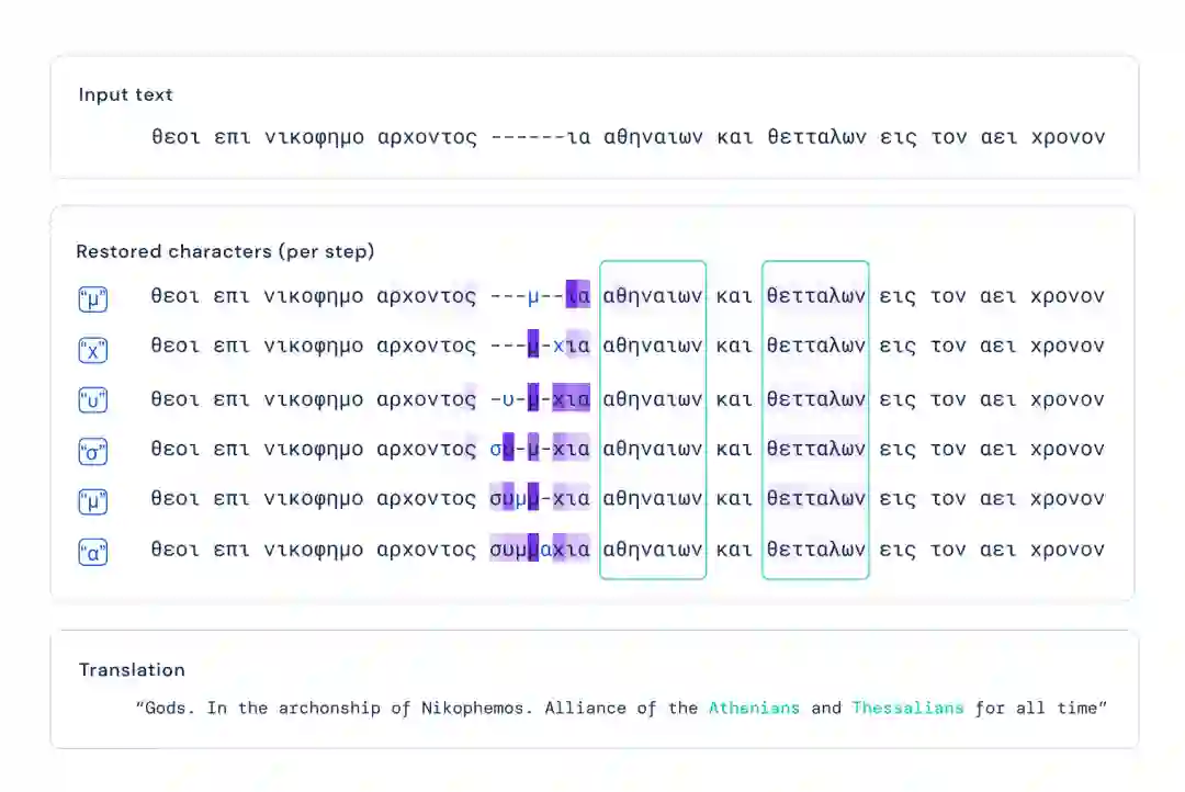 DeepMind与威尼斯大学人文系、牛津大学古典学院和雅典经济大学信息学系合作,探索机器学习如何帮助历史学家更好地解读这些残佚文本,从而让人们更深入地了解古代历史,并释放AI与历史学家之间的合作潜力。