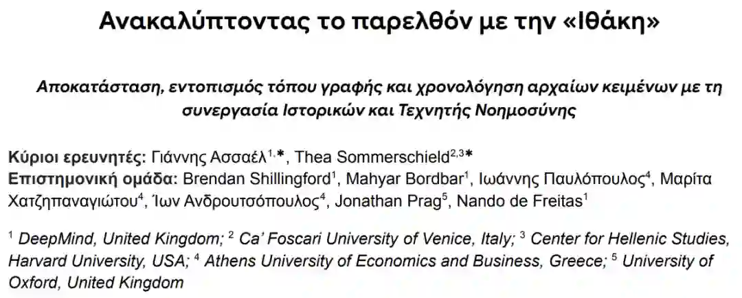 在发表于《自然》杂志上的论文中,这些机构共同推出了名为「伊萨卡」(Ithaca)的AI,这是第一个可以恢复受损铭文缺失文本、识别其原始位置并确定其书写时间的深度神经网络AI。