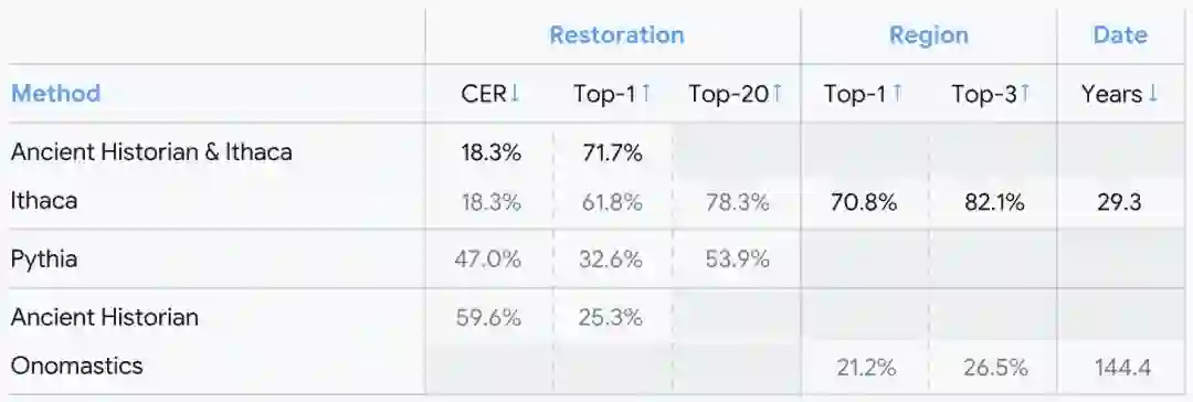 「伊萨卡」以史诗《奥德赛》中的希腊岛屿命名,基于DeepMind在2019年提出的「皮媞亚」(Pythia)文字修复系统,并在性能上有了史诗级的提升。