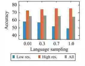 Figure 4 :关于高资源与低资源的权衡:语种数据采样率对于XLM-100的影响