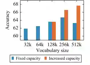 Figure 5:对于XLM-100固定模型容量时,增加词典大小的影响