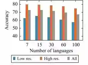 Figure 2:迁移能力的权衡:低资源语种从扩增的多语种中受益,直到”稀释”开始起作用并降低整体性能