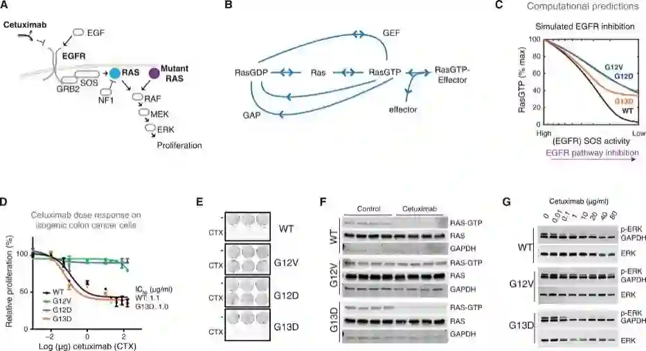 研究人员首先利用计算模型模拟了KRAS突变前和突变后细胞中复杂的生化反应,根据对每个过程的反应解读和之前的临床试验数据,梳理出了健康KRAS基因和突变KRAS基因之间可能存在的生物学差异,从而更准确地量化KRAS G13D患者独特的反耐药机制。通过计算生物学的分析,可以推断出几种可能存在的作用机制。