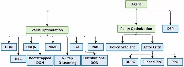 在Coach中集成了过去几年引入的各种Agent类型的实现方式,这让用户解决具有不同需求和与代理交互的方式的环境,例如连续和离散的动作空间,视觉观察空间或仅包括原始测量的观察空间。